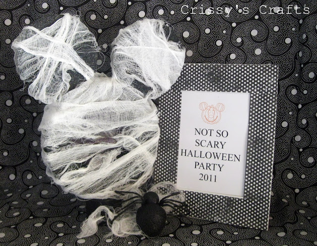 Spray paint the Styrofoam pieces, let it dry. Attach Mickey's ears using the toothpicks and adding glue to secure them. Wrap the Mickey with the cheesecloth.