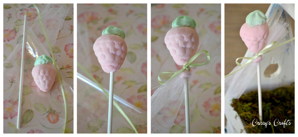 Simply stick the marshmallow on to the stick, tie a ribbon and you are done! How simple is that?